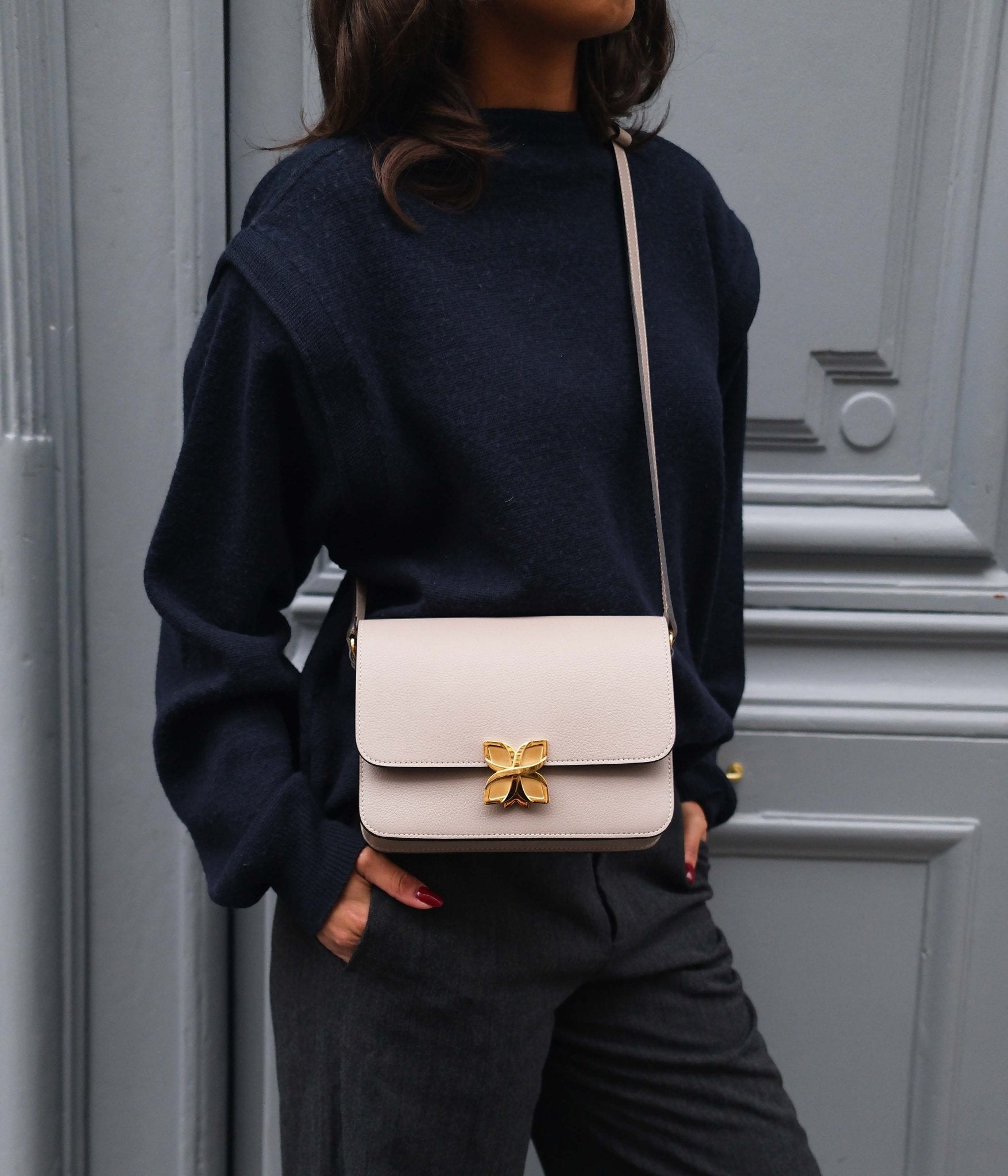 Its signature clasp, inspired by the hydrangea flower, adds a poetic and distinctive touch to this structured design. Inside, the bag offers a spacious and functional interior, thoughtfully designed to hold all your daily essentials with ease.