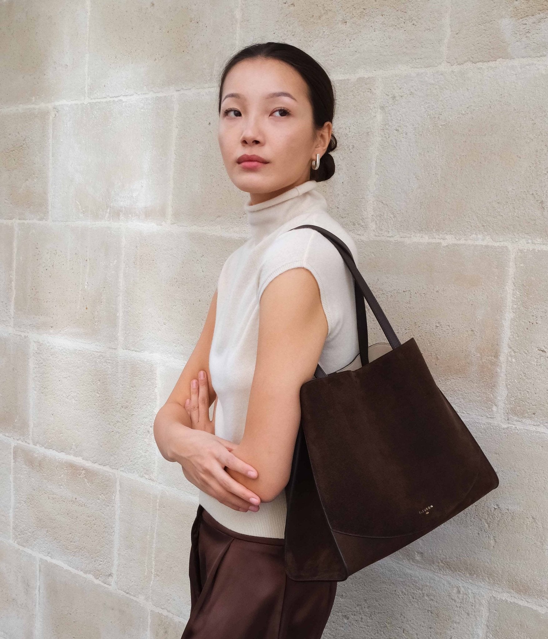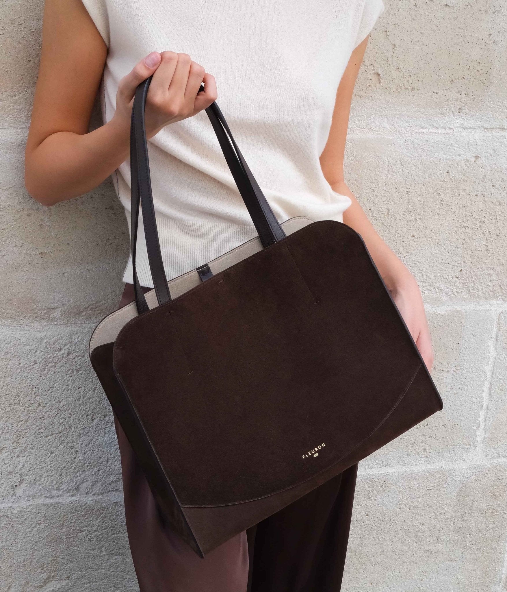 Carefully crafted in Italy, this suede calfskin tote showcases artisanal excellence through its meticulous details. Worn over the shoulder, it moves fluidly with you, balancing comfort and elegance. Its discreet drawstring closure lets you adjust the shape of the bag to suit your style, offering a chic yet relaxed silhouette. The Oak tote in Moka represents the perfect blend of functionality and sophistication, ideal for those seeking timeless elegance without compromising on practicality.