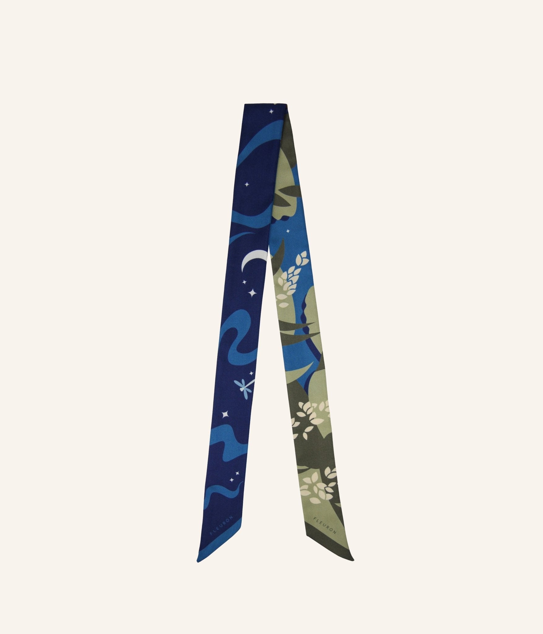 Inspired by the hushed atmosphere of the night, the "La Nuit" bandeau reveals a palette of deep blues and delicate motifs, evoking a silent landscape softly lit by the moon. Its rich, intense shades bring a sense of understated elegance, designed to elevate an outfit with subtle refinement.