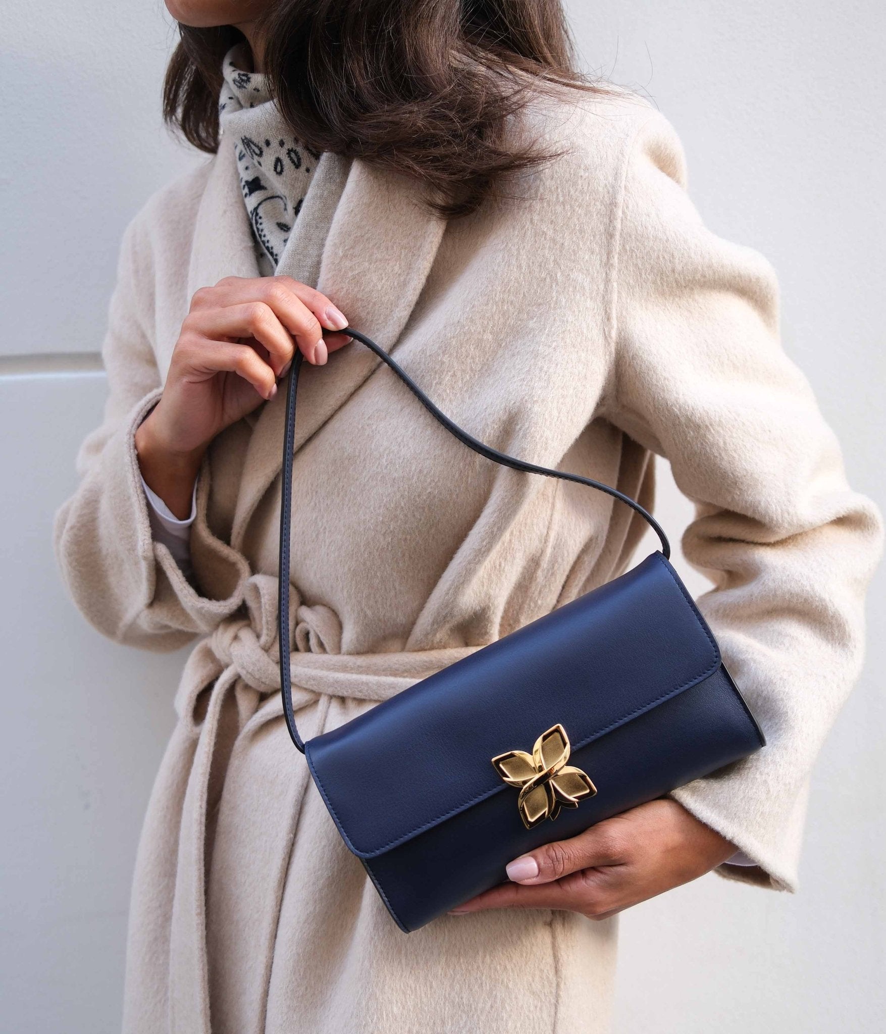 Its Midnight Blue shade, deep and enduring, pairs beautifully with light tones such as ivory, beige, or pearl grey, while offering an elegant contrast with warmer hues like camel or burgundy.