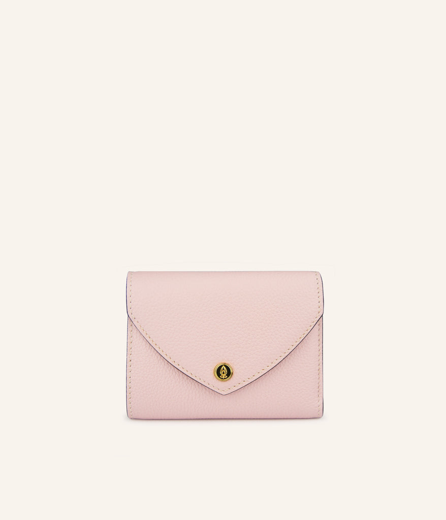 The Via wallet in Rose Ballet stands out with its soft, refined hue, adding a delicate touch to any outfit. Crafted from high-quality grained calf leather, it combines clean lines with meticulous attention to detail. Compact and functional, it features thoughtfully designed compartments for cards and bills, while slipping easily into your bag. An Italian creation that embodies Fleuron’s artisanal craftsmanship and timeless elegance.