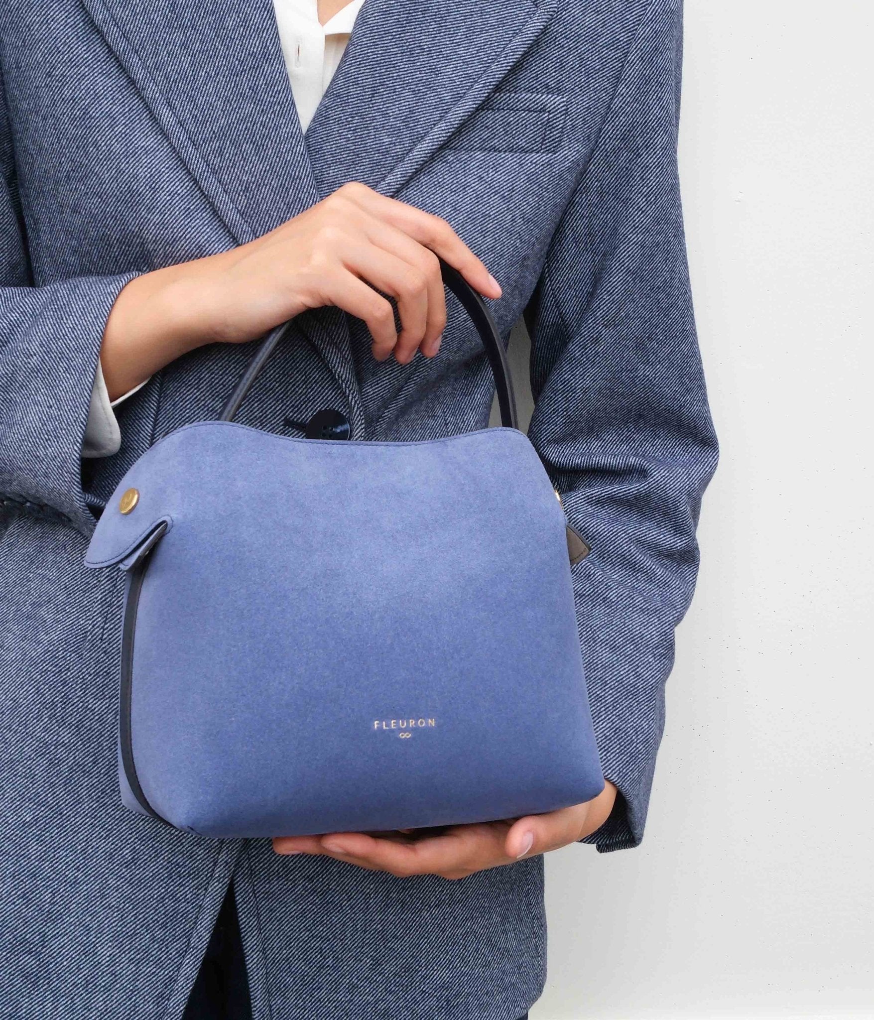 The Medium Swann in Calf Suede Jeans, designed in Paris and handcrafted in Italy, combines modernity with a relaxed spirit. Its deep, versatile Jeans shade pairs beautifully with light tones such as ecru, beige, or grey, while also working with stronger colors like black, camel, or burgundy for a bold and confident style.