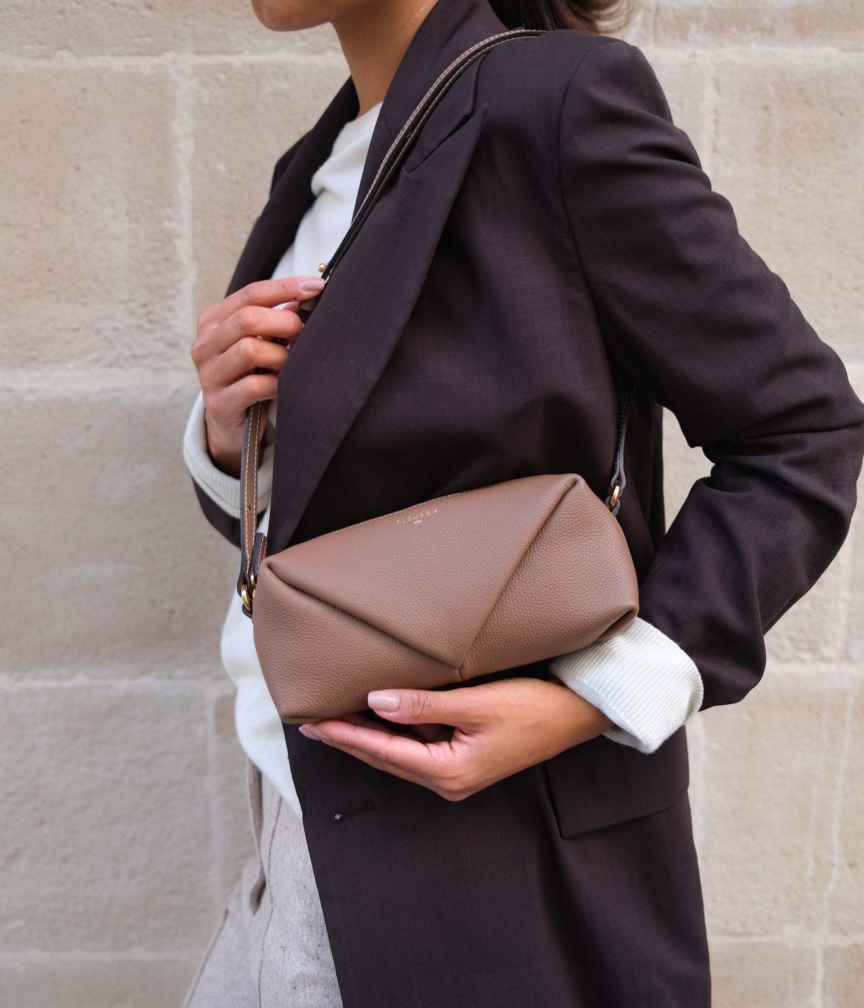 Add a touch of warmth and sophistication to your wardrobe with the Mini Trinity bag in Marron Glacé. This rich, enveloping shade brings a natural and timeless elegance to this compact format, perfect for everyday use.