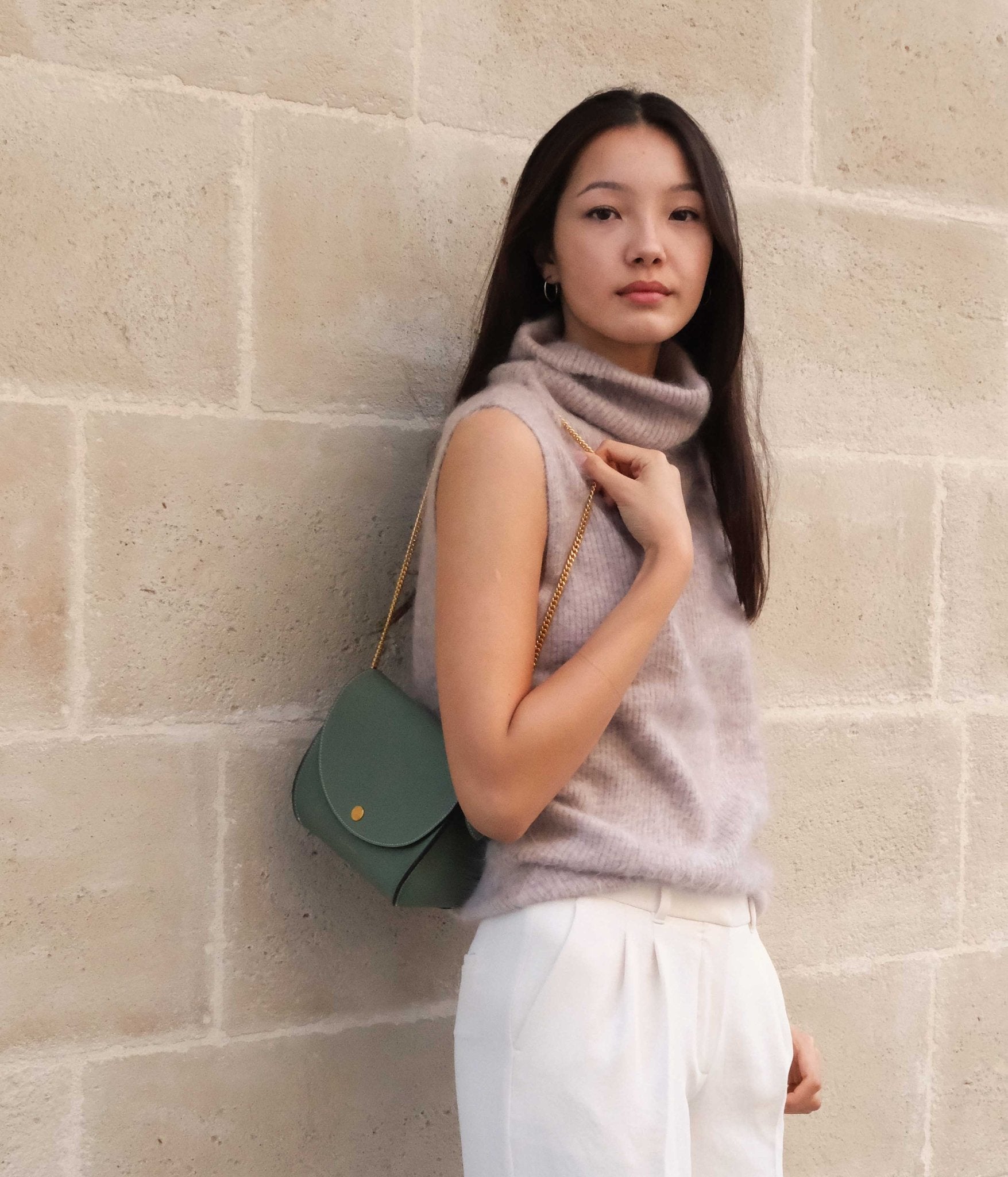 Add a subtle touch of freshness to your style with the Mini Magnolia in Almond Green, a delicate and modern shade that brightens any outfit with natural elegance. Handcrafted in our Italian workshop, this crossbody bag reflects true Italian craftsmanship, combining clean lines with practical functionality for everyday life.